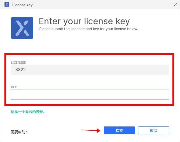 8、将激活码输入对应的位置,点击提交即可完成版本激活
