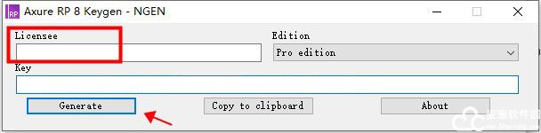 7、运行注册机,输入名称,选择版本,提供了专业版、团队版、企业版三个版本,然后点击generate即可生成有效的激活码