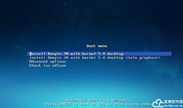 1、首先在本站下载好安装包,然后找到加载Linux 20镜像,选择“Install20 with kernel 5.4 desktop”开始安装系统