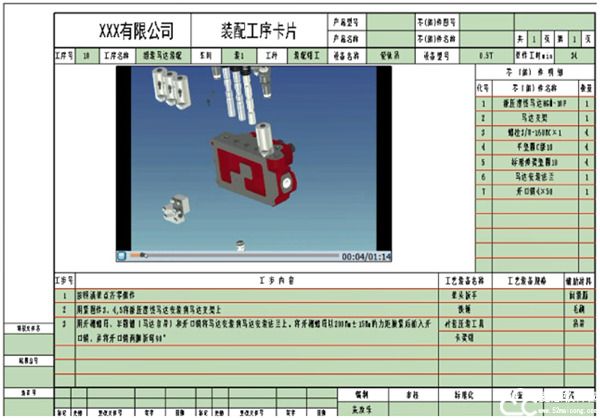 工艺卡片不仅支持dwg、dxf、exb等CAD格式图形的插入,还支持图片、视频的插入。插入的视频支持直接播放,直观的显示方式,方便工艺浏览人员对工艺的理解。同时,生成的工艺卡片在通过组件浏览时,也支持视频的播放,方便了可视化工艺直接在车间的电子发放