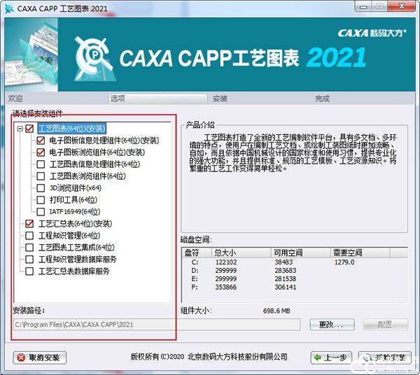 4、选择需要安装的组件,在确定软件安装的路径,默认安装在C盘,可点击更改软件安装的路径,确认后直接点击安装即可