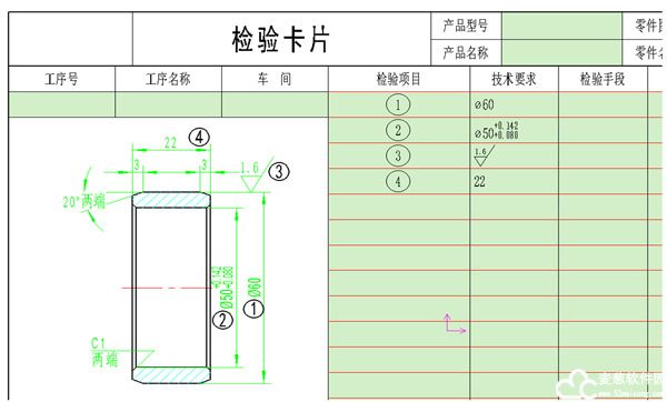 工艺图表支持对卡片中图形尺寸的提取,并自动编号,方便企业快速准确生成检验卡片、气泡图