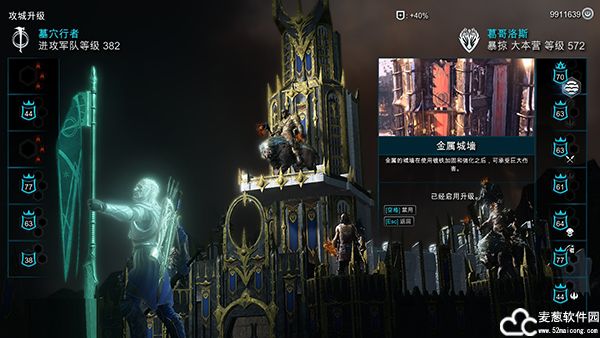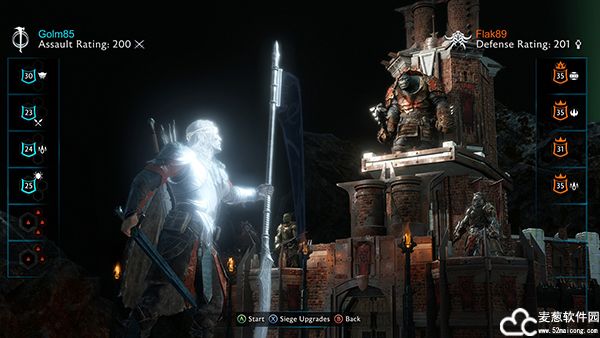 当玩家的堡垒受到攻击时,双方都可以利用攻城升级提高实力。每位堡垒中的酋长和进攻军队中的进攻方首领都能得到一项攻城升级来增加己方的实力。攻城升级可用米利安购买,一次只能激活一个类目中的一项攻城升级