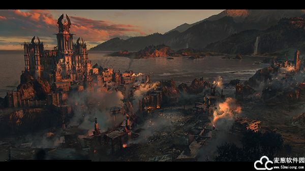 索伦的巴拉多堡垒主导着葛哥洛斯的景观,只有当末日火山在地平线上剧烈震动并喷出烟雾时,它自身的壮阔会使葛哥洛斯黯然失色