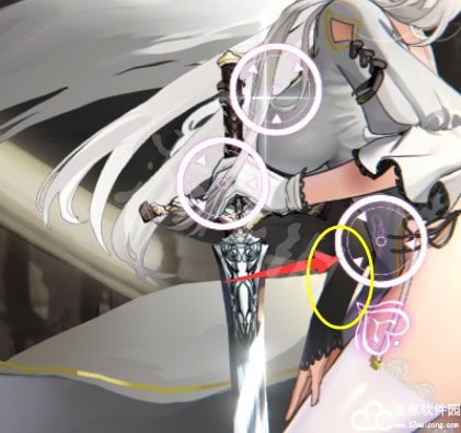左胸,项链,右手的绷带,瞳孔,猫耳,尾巴(等晃出来)。