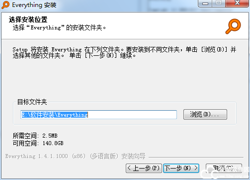 4、选择Everything搜索工具中文版安装文件夹,点击下一步