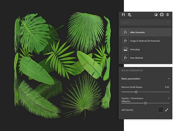 “图像转素材”功能可以消除阴影,生成精度无与伦比的反照率贴图、粗糙度贴图、正常贴图和置换贴图