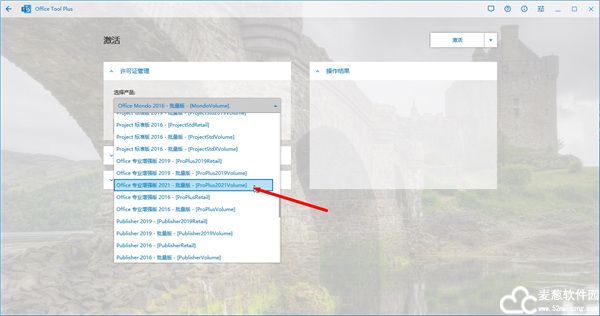 9、在OfficeToolPlus主界面中,点击激活,此时选择office专业增强版2021批量版;