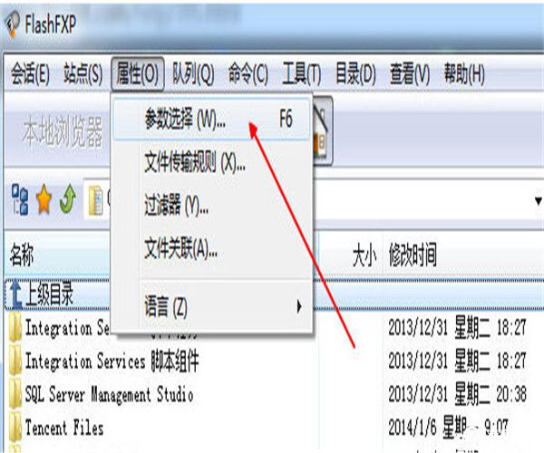 1、我们先打开flashfxp破解版软件,然后点击菜单上的“属性>>参数设置” 也可以在界面按下F6键效果一样。