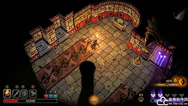 2、美术风格不错,提着灯探索神庙第一反应想起暗黑地牢(实际上制作组自己都说开发阶段他们是以“3D的暗黑地牢”来称呼这款游戏的),大量参考了玛雅文明的一些要素,印象最深的是第二关的BOSS,双面神,正面光明反面黑暗