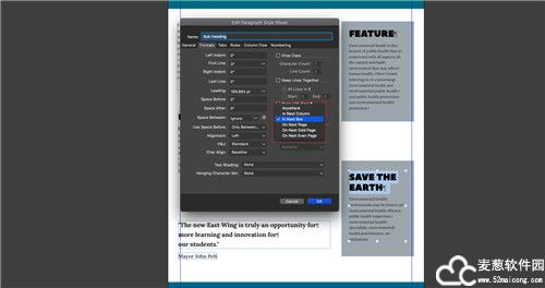 用户可以在任何文章(奇偶页或新页)上指定段落的开头。有一个选项可以定义段落样式表中的 Break 选项,称为 Start Paragraph