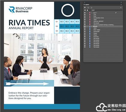 在文档内的多个图层中选择和组织对象。通过拖放向后或向前移动对象,并更轻松地执行锁定/解锁、隐藏/取消隐藏和多选等关键操作
