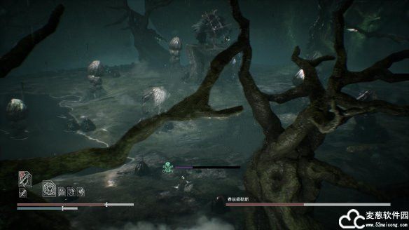 4、当贪婪血量剩余1/4时,会再次跳上树桩。同时在周围召唤四个小型贪婪诅咒玩家,和中毒类似当屏幕中的诅咒条满的时候玩家会直接死亡。所以赶紧击杀4个小型贪婪,小型贪婪的血很少,一刀就能解决一个