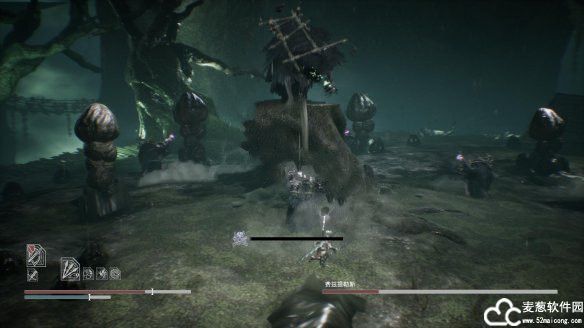 面会产生毒液,所以这里建议单手剑玩家不要太贪刀,蹭几刀后就尽快跑开毒液的范围以免中毒