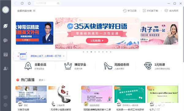 cctalk校园版不仅拥有国内外知名学校的海量名师名课,还有网红、明星的人气公开直播课。内容不仅覆盖英、日、韩、法、德、西等语言,还包括口语、留学、亲子、中小学、职场、考研考证等热点知识的系列专题