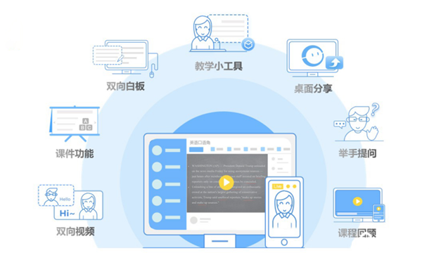 全网功能最齐全的直播工具,包括播放讲义、免费录制、双向视频、双向白板、支持摄像头、屏幕分享、支持播放音乐、影片以及OCS开放式课件制作系统等等功能