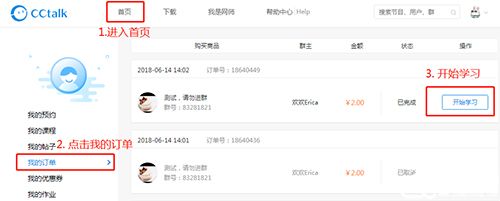 (二)登录官网-我的订单中查询,找到购买的群并点击入群学习,系统会自动调起客户端并进入到相应的群中
