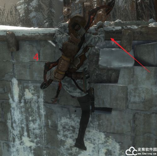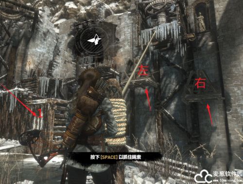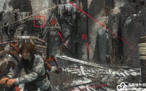 5、在古墓丽影崛起免费完整版,攀爬到达右边平台上后,继续往前跳到第二层的右边平台上