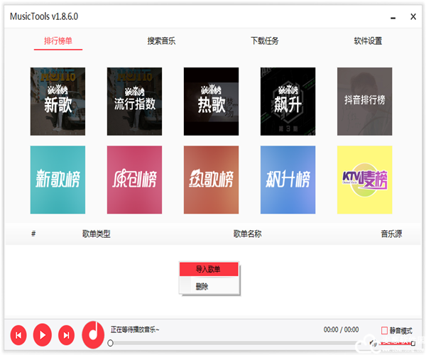 1、在MusicTools破解版页面中右键选择“导入歌单”