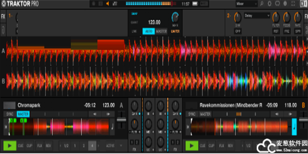 1、平行波形:Traktor Pro中文版增加了两个新的唱盘显示尺寸模式 完整尺寸平行(Parallel Full) 和 小尺寸平行(Parallel Slim),现在您可通过堆叠的波形显示替换之前的并排波形显示。