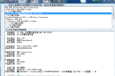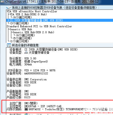 3、查看USB设备闪存芯片信息;