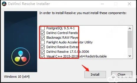 2、双击“DaVinci_Resolve_Studio_17.0b1_Windows.exe”根据自己的需求来勾选安装内容