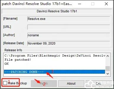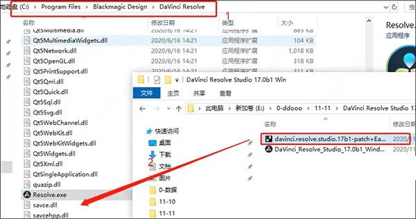 7、接着将注册机“davinci.resolve.studio.17b1-patch+EasyDCP.exe”复制到安装目录下