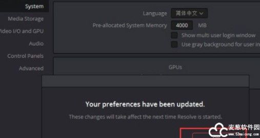 然后接下来单击偏好设置窗口右下角的save选项,会弹出提示窗口,提示下次启动会应用本次的设置。单击OK。