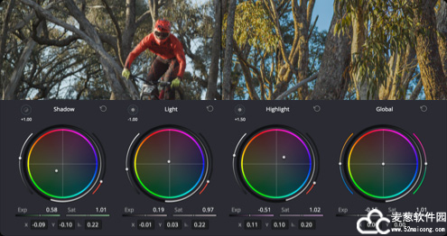 HDR调色设置面板能创建新的色轮,带有特定色调范围的自定义过渡功能,为您提供更有创意的控制和细致的调整。色轮包括每个区域的曝光度和饱和度控制,并且基于色彩空间,可获得视觉上一致的调整结果。