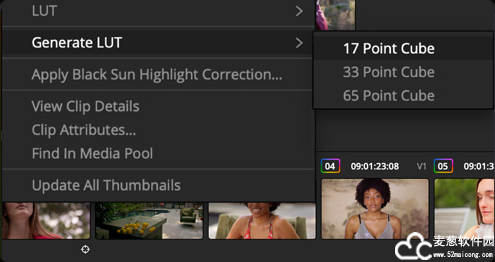 达芬奇17免费版可以直接从时间线生成17点3D LUT,是现场监看的理想方案。它还支持视频范围LUT元数据,并且可以设置本地或网络卷上的自定义LUT路径,实现机构内的LUT共享。