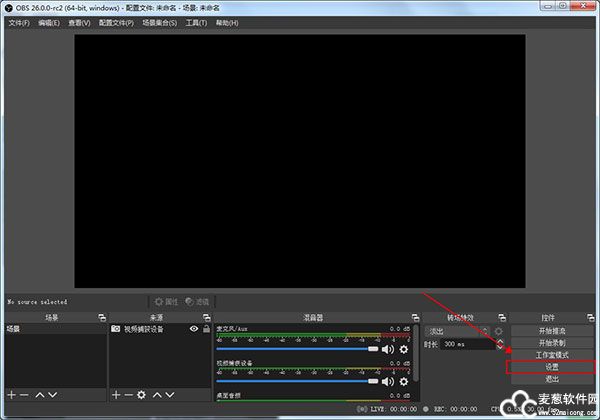 1、首先打开电脑上的OBS软件,进入OBS后点击界面右下角的【设置】按钮
