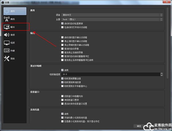 2、进入设置界面后,我们先点击该界面左侧栏的【输出】按钮