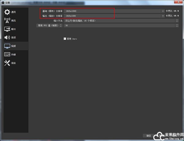 6、进入视频设置界面后,将基础分辨率和输出分辨率设置为最高(如图所示小编的电脑最高为1920×1080)