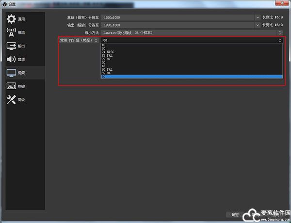 8、设置完成缩小方法后,我们再将下方的FPS值设置为【60】也就是最大值