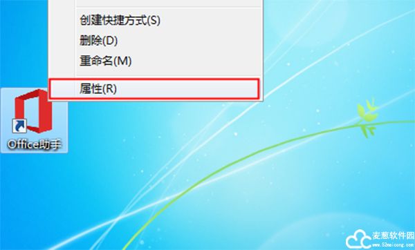 5、这时候桌面多个一个off助手,鼠标右击--属性