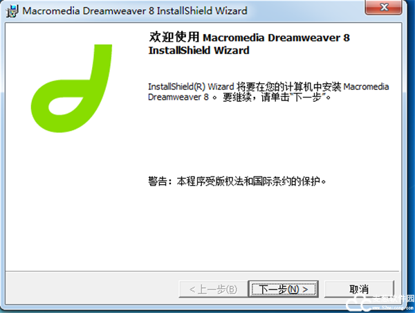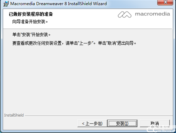5、准备安装Dreamweaver免费版,你可以点击安装软件开始安装,如果您要更改软件安装设置,点击上一步进行修改。