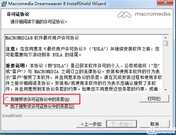 2、进入软件安装协议界面,您可以先阅读协议中的内容,阅读完成后点击我接受然后点击下一步继续安装。