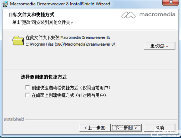 3、选择软件安装位置,您可以点击更改在打开的窗口中,您可以自行选择软件安装位置,选择完成后,您可以自行选择是否创建快捷方式,选择完成后点击下一步继续安装。