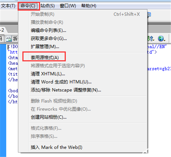 软件怎么格式化代码1、如果您在编辑代码是遇到格式乱了,您可以点击Dreamweaver免费版菜单栏中的命令在弹出的选项中点击套用源格式就可以把代码格式化。