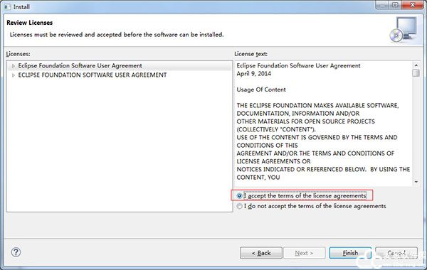 5、勾选I accept 即我同意许可协议,点击finish开始安装中文插件