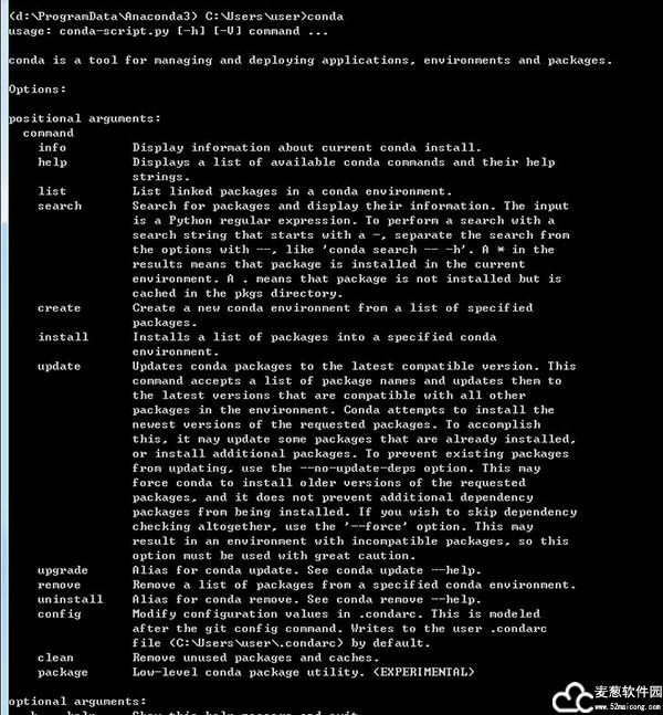 3、查看conda帮助信息
