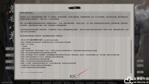 6、进入界面后可以看到游戏的版本更新内容,点击确定
