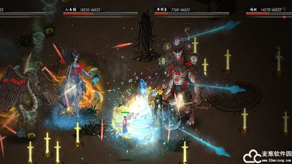 在鬼谷八荒pc破解版,向上挥剑-火焰*3:没有路径警告,其实中间那个应该是自机狙。距离远一点容易躲,判定不是很大,会重复三次该行动