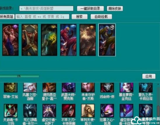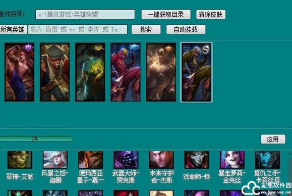 6、选择英雄皮肤,点击应用即可,进游戏后自动开启动态换肤,PageUp皮肤递增,PageDown皮肤递减