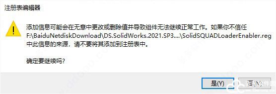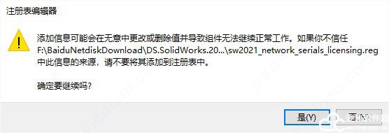 4、双击破解工具中的sw2021_network_serials_licensing.reg,导入注册表信息;