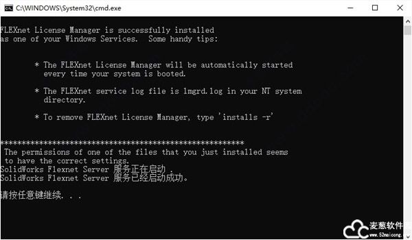 5、将“SolidWorks_Flexnet_Server”文件夹复制到C盘根目录,右键以管理员身份运行文件夹中的server_install.bat,启动“SolidWorks Flexnet Server”服务;