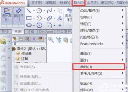 1、打开SolidWorks2021电脑版,点击“插入”,“曲线”,“螺旋线/涡状线”