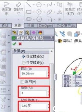 2、输入螺旋线的参数;