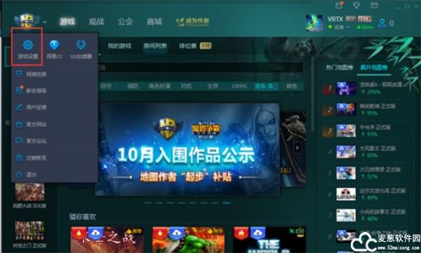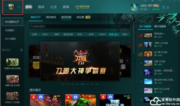 魔兽争霸官方对战平台官方版怎么调游戏画质?1、首先登入平台,继续点击下图中红色箭头所指的按钮