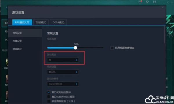 3、在出现的游戏设置栏中找到游戏画质选项,并点击下拉框